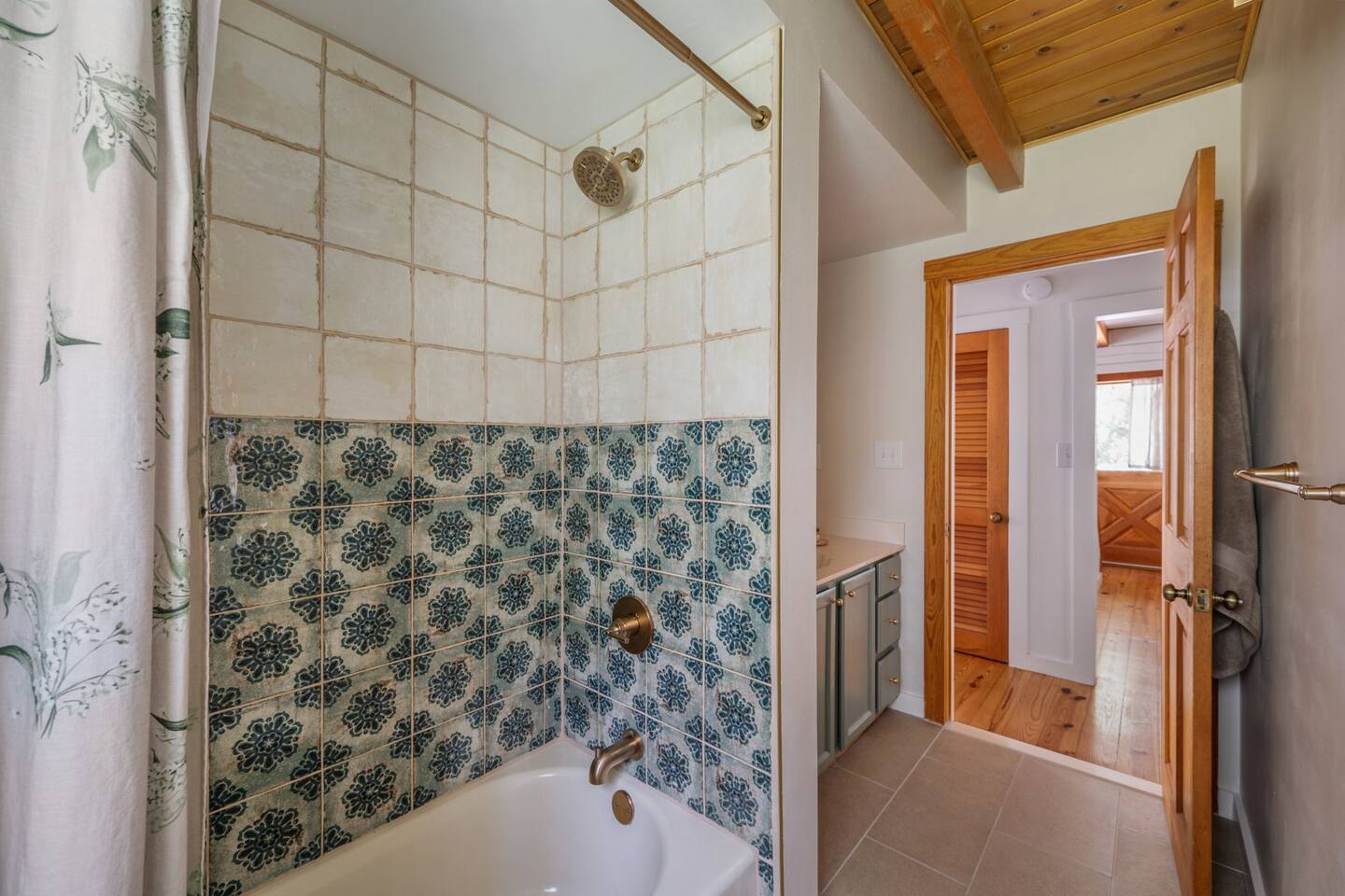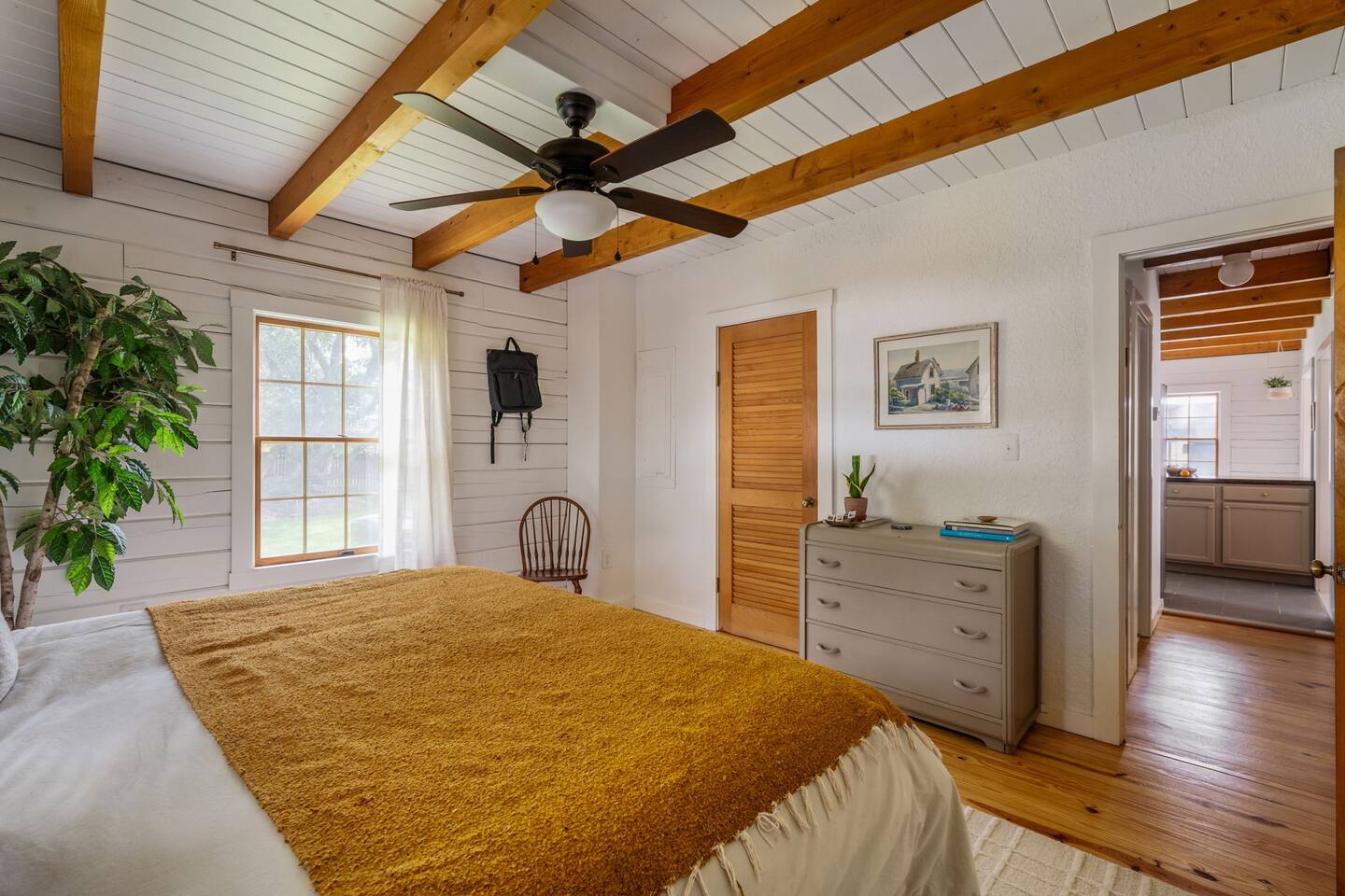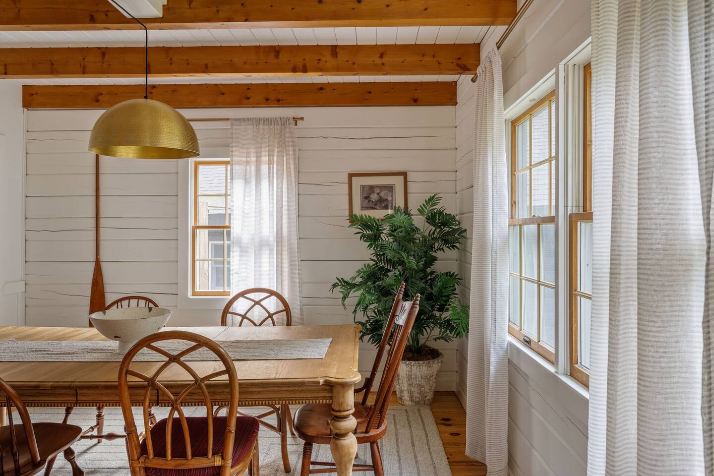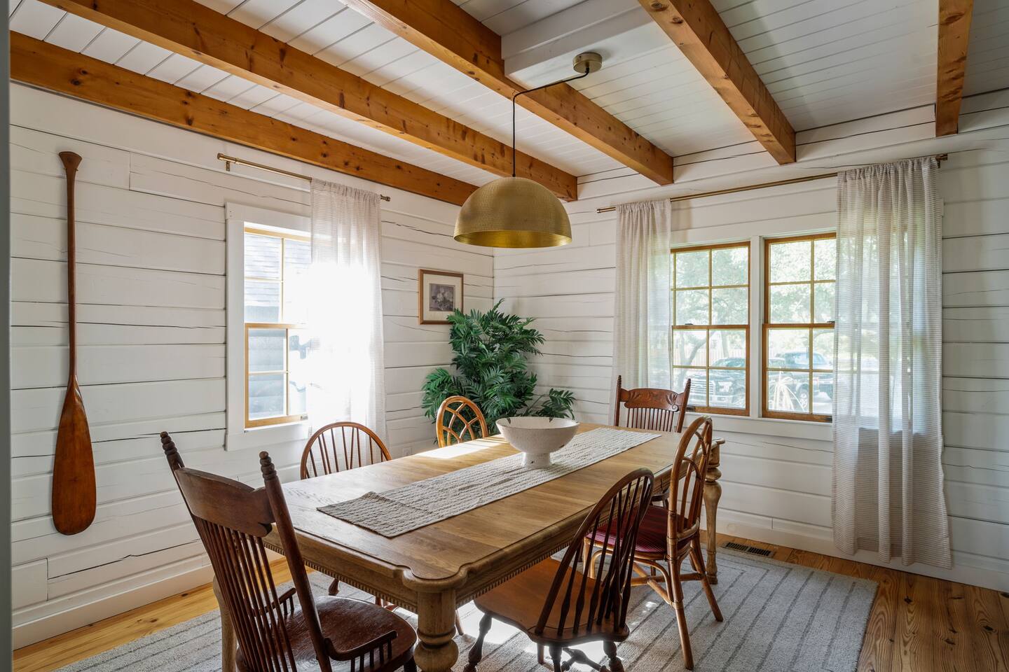 The Cabin is a unique beach cabin located in the heart of Kill Devil Hills close to the beach, bay, restaurants and attractions! The space is fully equipped with everything you need to enjoy your time in the Outer Banks! A few highlights: ✓ Short walk to to beach or to the bay ✓ Newly designed and renovated home ✓ Stunning cedar beams, logs & tongue and groove paneling ✓ Bedrooms with vaulted ceilings and exposed beams ✓ 1 Bedroom with a king sized memory foam beds & high-end duvets ✓ 2 Bedrooms, each with 2 queen sized memory foam beds & high-end duvets ✓ 2 Luxurious bathrooms clad in unique patterned tiles ✓ TV in living room equipped with Roku ✓ Amazing dual head outdoor shower with rain heads ✓ Hammock, lounge chairs and firepit ✓ Picnic table with umbrella on the deck, additional picnic tables & propane grill ✓ Bikes, beach towels, beach chairs, beach umbrellas, fire-pit, lawn games ✓ Wifi Included ✓ Free Onsite Parking Every detail was considered when designing a holiday escape for our guests. The home affords a spacious layout in a beautiful log-cabin setting. There are 3 bedrooms in the home. The primary bedroom is on the first floor with a king sized mattress. Upstairs there are two large bedrooms, each with 2 queen sized beds and a dresser/ armoire. The main living space offers a deep, comfy sofa perfect for afternoon naps as you feel the summer breezes flowing through the home. The kitchen is fully stocked and has a central island perfect for gathering around and spending time with friends and family. The kitchen is also equipped with a washer and dryer for guest use. In the dining room, you will find a large table perfect for family gatherings. The backyard is a real show stopper - perfect for all of your outdoor activities. Enjoy the sprawling lawn to layout, play games, or any other activities you can think of at the beach! Take time relaxing in the hammock or the lounge chairs during the day, or have a BBQ with the grill and picnic tables under the string lights in the evening. Finish your night by gathering around the fire pit under the stars. And finally, no matter what time of the day, the dual rain head outdoor shower is perfect for cooling off and relaxing.