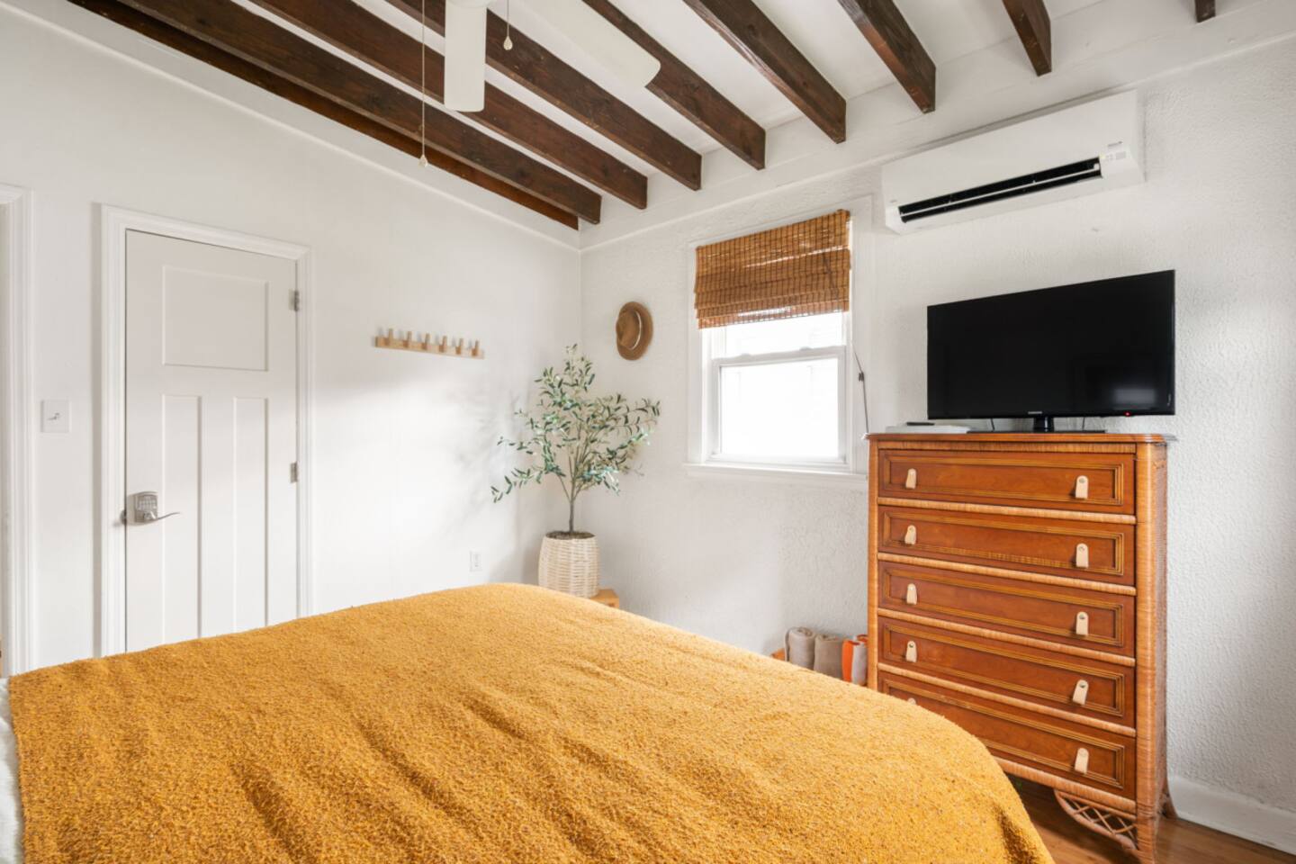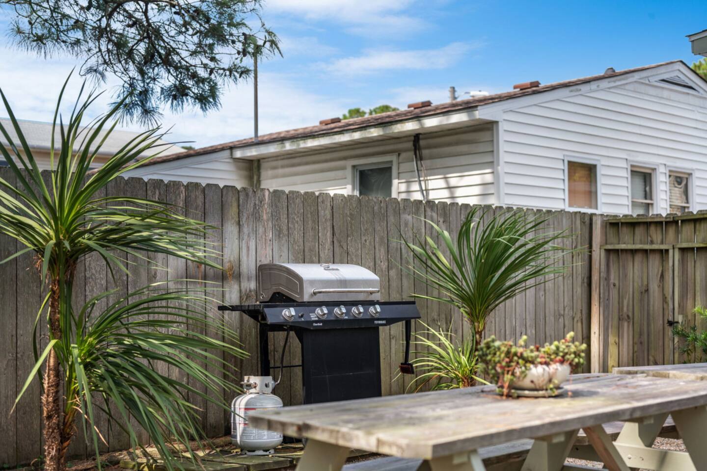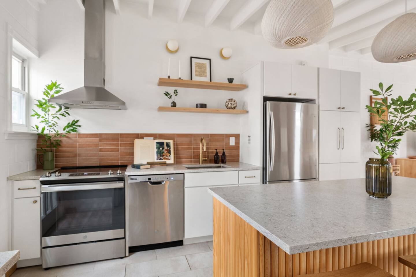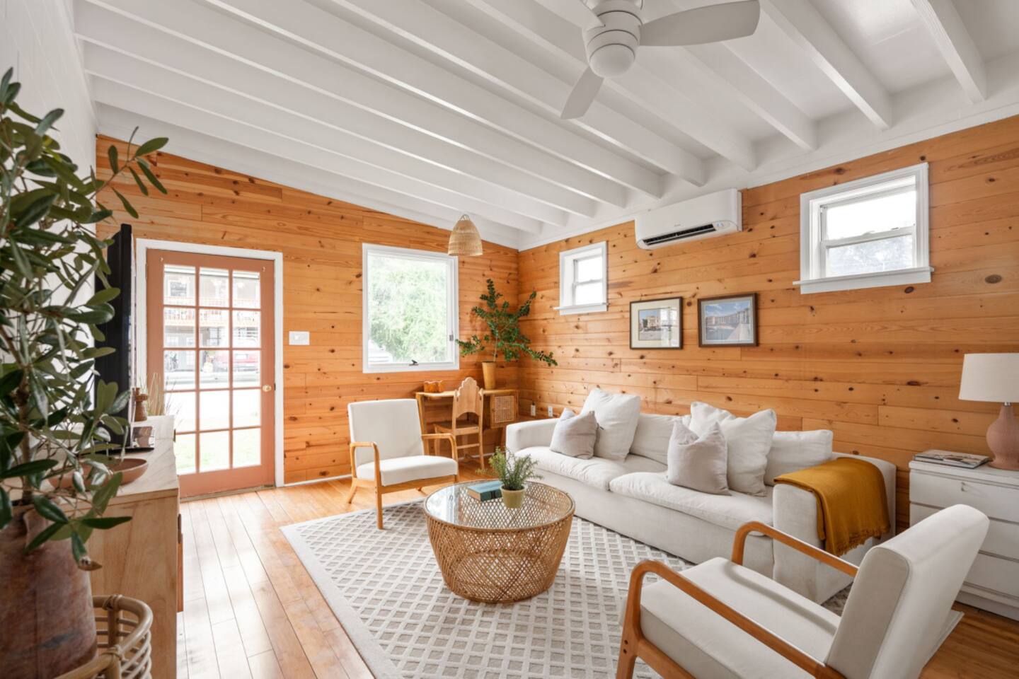 The Casita is a quintessential beach bungalow located in the heart of Kill Devil Hills close to the beach, bay, restaurants and attractions! The space is fully equipped with everything you need to enjoy your time in the Outer Banks! A few highlights: ✓ Short walk to to beach or to the bay ✓ Newly designed and renovated home ✓ Fluted cypress island and concrete finish quartz countertops ✓ Vaulted ceilings with exposed beams ✓ 2 bedrooms with queen size memory foam beds & high-end duvets ✓ Luxurious bathroom clad in terracotta accents ✓ TVs in living room and both bedrooms with Amazon Firesticks ✓ Amazing outdoor shower with rain head ✓ Hammock & Lounge chairs ✓ Picnic table & propane grill ✓ Bikes, beach towels, beach umbrellas, fire-pit, paddle board ✓ Wifi Included ✓ Free Onsite Parking Every detail was considered when designing a holiday escape for our guests. The home affords an open concept living & kitchen space, 2 bedrooms with queen sized beds & 1 luxurious bathroom. There are 2 bedrooms in the home, both with queen sized beds and a dresser/ armoire, as well as a TV equipped with Amazon Firesticks. The main living space offers a deep, comfy sofa perfect for afternoon naps as you feel the summer breezes flowing through the home. The kitchen is fully stocked and has a central island perfect for gathering around and spending time with friends and family. The kitchen is also equipped with a washer and dryer for guest use. The backyard is perfect for all of your outdoor activities. Enjoy relaxing in the hammock or the lounge chairs during the day, or have a BBQ with the grill and picnic table under the string lights in the evening. Finish your night by gathering around the fire pit under the stars. And finally, no matter what time of the day, the rain head outdoor shower is perfect for cooling off and relaxing.